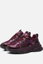 Baskets rouge bordeaux pour femme de Harper. Fabriqué en simili cuir, un intérieur textile et une semelle en caoutchouc. Les baskets ont une fermeture à lacets et une boucle au talon. L'assise plantaire fixe est en cuir. Doté de détails en mesh sur la tige et d'une semelle épaisse.