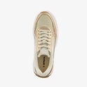Baskets beiges pour femmes. Fabriqué en simili cuir, un intérieur textile et une semelle en caoutchouc. Doté d'une fermeture à lacets et d'une semelle intérieure amovible en similicuir. Les baskets ont des détails dorés et métalliques sur la tige.