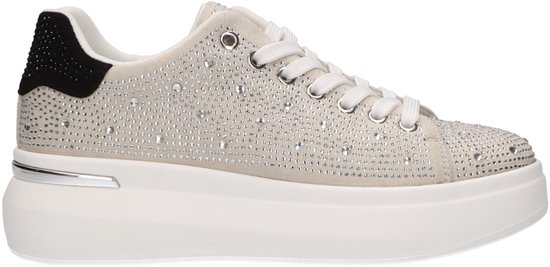 Baskets grises cool avec strass et semelle plateforme Witte – Comfort et style en un. Ajoutez une touche sportive à votre collection de chaussures avec ces baskets grises cool pour femmes ! La sneaker est dotée de magnifiques strass qui donnent au look une touche glamour, tandis que la semelle haute plateforme blanche de 4 centimètres offre un gain supplémentaire de longueur et de confort. Cette sneaker s'adapte parfaitement à toutes les outfit, de décontractées à tendance. Les tailles sont normales et la semelle intérieure en mousse à memory offre non seulement un confort merveilleux, mais est également amovible. Cela signifie que vous pouvez ajuster la sneaker pour un ajustement parfait, afin de pouvoir marcher dessus toute la journée sans aucun souci. Que vous souhaitiez combiner un look sportif avec une robe ou rester décontracté dans votre jean préféré, ces baskets sont votre nouveau must-have !