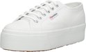 Issue de la collection de la marque italienne Superga , cette sneaker basse tendance est 2790 Cotw Line UP AND Down avec laçage. Ce modèle est entièrement réalisé en toile blanche et possède une semelle intérieure fixe. Cet article décontracté est orné d'un passepoil et d'anneaux en dentelle argentés. La sneaker a une semelle plate-forme blanche frappante d'environ 4,5 cm d'épaisseur avec un fin relief sur le nez et une impression de marque au talon. La semelle robuste de la chaussure est en caoutchouc et a un joli profil.