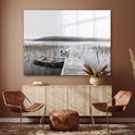 Bateaux à rames amarrés à une jetée Plexiglas 160x120 cm - Tirage photo sur verre (décoration murale plexiglas) XXL / Grand format!