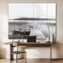 Ce produit est imprimé sur une plaque de verre. Grâce à cette texture lisse et brillante, la technique d'impression UV assure une belle impression brillante. Une photo sur verre est imprimée très nettement avec des couleurs très vives. Un système de suspension peut être commandé en option avec le produit pour fixer facilement l'impression au mur.