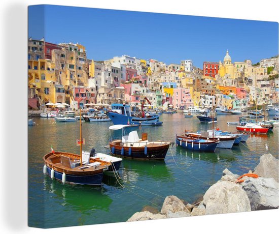 Bateaux colorés dans le port de Naples Toile 30x20 cm - petit - Tirage photo sur toile (décoration murale salon / chambre)