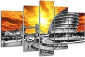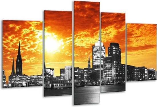 Bâtiment de peinture sur verre | Orange, jaune, gris | 170x100cm 5Liège. Cette peinture sur verre fait partie de la collection GroepArt et c'est un moyen simple et rapide de transformer complètement n'importe quel mur! Nos peintures sur verre contiennent de belles images imprimées sur du verre de 4 mm d'épaisseur. Cette peinture est disponible en 40 tailles sur notre site Internet. Personnalisation possible! Cette peinture sur verre mesure 170 cm x 100 cm. Incl. jeu de suspension (à confirmer par vous-même). Le paquet contient 5 peinture sur verre à trappe, manuel, ensemble de suspension, protège avec du papier d'aluminium, emballé dans une boîte en bois robuste.