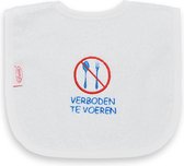 Bavoir avec "Interdit de nourrir". Bavoir en éponge de haute qualité avec joli texte, 100% coton.