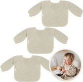 Lot de 3 bavoirs à manches Funnies | Crème | Set de 3 pièces | Bavoirs bébé | 6 à 24 mois | Bavoir Avec Manches