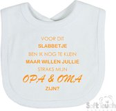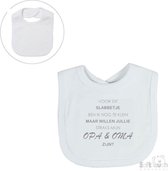 Bavoir Soft Touch "Je suis encore trop petite pour ce bavoir, mais tu veux être ma grand-mère ?" Katoen Unisexe Wit/ Gris Taille 33x22 Cm