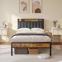 Bealife BF26 Cadre de lit - 200 x 140 cm - avec tête de lit à rangement - Gris clair