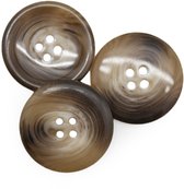 Beau bouton crème/marron 2 trous. Diamètre 25 mm. Sachet de 10 pièces.