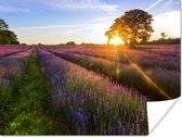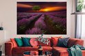 Beau champ de lavande un soir sombre avec coucher de soleil Poster 180x120 cm - Tirage photo sur Poster (décoration murale salon / chambre) XXL / Groot format!