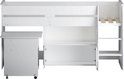 Concept fantastique. Bureau sous le lit pour plus de marge de manœuvre. Bonne qualité de bois! Tout était étiqueté individuellement. Vraiment pratique. Attention: il contient une plaque de fond avec trous de ventilation et donc Geen de sommier à lattes comme indiqué dans les spécifications.