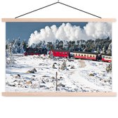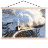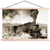 Beaucoup de vapeur au-dessus de la locomotive à vapeur affiche textielposter 150x100 cm