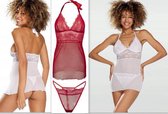 Beauty Night Shirley Nuisette en satin avec dentelle rouge - L / XL