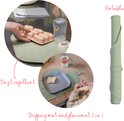 Les bords surélevés garantissent que l'eau renversée reste sur le tapis. Enroulez le tapis pour un rangement et une portabilité faciles, ou utilisez la boucle pratique pour le suspendre et le laisser sécher. Il se glisse sans effort dans n'importe quel sac à langer, tiroir de cuisine ou valise. De cette façon, vous êtes toujours préparé, quelle que soit la situation. De plus, il est fabriqué en silicone anti-poussière afin qu'aucun poil gênant ou autre saleté ne colle au tapis et que le tapis reste propre.