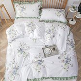Beddengoed à volants, 135 x 200 cm, 2 pièces, blanc, vert, floral, réversible, microfibre, parure de lit douce, dekbedovertrek romantique pour fille, dekbedovertrek éclair et