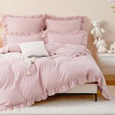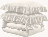 Conditionnement et dimensions : le colis contient 1 dekbedovertrek 135 x 200 cm + 1 taie d'oreiller 80 x 80 cm, avec fermeture éclair. La couette à volants romantique et élégante est le cadeau parfait pour les enfants, la famille et les amis pour les anniversaires, la Saint-Valentin, les anniversaires, Thanksgiving et Noël. Matériaux de haute qualité : le linge de lit à volants floraux est fabriqué en 100 % microfibre de polyester brossé de haute qualité, résistant à la décoloration et aux plis ; doux pour la peau, respirant et doux, avec une texture semblable à celle du coton qui vous garde au chaud et confortable toute l'année. La literie est également certifiée selon les directives de l'Oeko-Tex Standard 100. Design chic Uniek : le motif floral magnifique et élégant avec un design à franges unique donne à la literie une sensation de design et de sophistication visuellement et textuellement attrayante. Cette parure de lit douce et confortable améliorera non seulement votre sommeil, mais ajoutera également une touche d'élégance et de romantisme à votre lit, tout en créant une atmosphère apaisante et chaleureuse. Confortable et pratique : L'oreiller et la dekbedovertrek sont équipés de fermetures éclair de haute qualité qui permettent un enfilage et un retrait rapides, ainsi que des liens pratiques cousus aux 4 coins de la housse pour maintenir la couette dans la bonne position et conserver sa forme, afin qu'il ne glisse pas accidentellement dans la housse. Le confort et la chaleur ultimes pour un sommeil agréable toute l'année. Instructions de lavage : les parures de lit peuvent être lavées en cycle délicat à 40 °C ou moins avec un détergent doux et séchées au sèche-linge à basse température. Ne pas utiliser d'eau de javel.