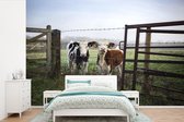 Behang - Fotobehang Koe - Kalf - Dieren - Gras - Breedte 415 cm x hoogte 300 cm