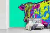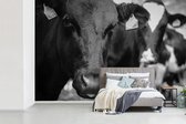 Behang - Fotobehang Koe - Tong - Weide - Breedte 330 cm x hoogte 220 cm
