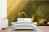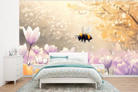 Behang - Fotobehang Viooltjes - bij - Zonlicht - Breedte 375 cm x hoogte 280 cm