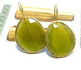 Behave Boucles Boucles d'oreilles clous vintage vert ovale 3 cm