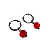 Behave – Boucles d'oreilles – Boucles d'oreilles Petit Coeur en Argent Sterling avec Pierres de Cristal Rouge Oranje