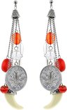 Behave Boucles d'oreilles couleur argent avec pendentifs et dent rouges