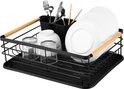 Behave Égouttoir à vaisselle avec égouttoir – Égouttoir à vaisselle – Avec porte-couverts – Gain de place – Zwart
