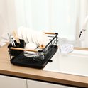 Behave Égouttoir avec égouttoir – Comprend égouttoir – Égouttoir à vaisselle – Avec porte-couverts – Gain de place – Métal – Zwart