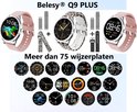 Smartwatch Belesy® Q9 PLUS 2022 - Smartwatch Femme - Smartwatch Homme - Montre - 1,28 pouce - Écran couleur - Podomètre - Tension artérielle - Fréquence cardiaque - 75+ Cadrans - Sports - Acier - Argent - Siliconen - Rose