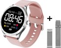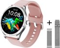 Belesy® BQSiRgPk 2022 - Smartwatch Femme - Smartwatch Homme - Montre - 1,28 pouce - Écran couleur - Podomètre - Tension artérielle - Fréquence cardiaque - 75+ Cadrans - Sports - Argent - Siliconen - Rose - Bracelet supplémentaire Argent milanais
