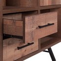 Réorganisez votre salon avec cette spacieuse armoire murale au charme rustique du Far West. Il offre une variété d'options de rangement: quatre compartiments ouverts, deux tiroirs spacieux et un compartiment fermé par une porte. Cela donne à l'armoire suffisamment d'espace pour votre collection de livres, d'articles de famille et de nombreux objets décoratifs. Le mobilier design repose sur quatre pieds en métal robustes.