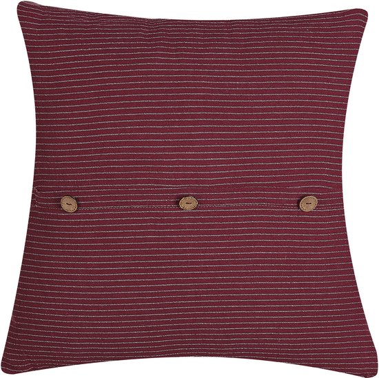 Ajoutez ce charmant kussen rayé à boutons décoratifs à votre intérieur. La housse est faite d'une combinaison de polyester et de coton, ce qui la rend extrêmement douce et durable. Utilisez cet kussen seul ou en combinaison avec d'autres oreillers. La fermeture éclair intégrée et dissimulée rend la pièce facile à entretenir sans compromettre l'aspect général.