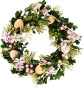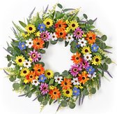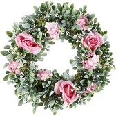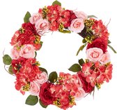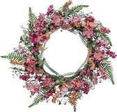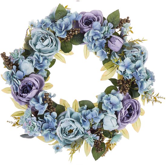 Cette couronne de fleurs ronde donne un caractère unique à votre intérieur. La combinaison de pivoines et d'hortensias dans des tons de bleu et de violet a fière allure sur les murs ou les portes blancs et gris. Grâce au crochet pratique, vous pouvez facilement accrocher la couronne dans votre endroit préféré. La couronne est faite de brindilles et de fleurs artificielles de haute qualité avec des pétales de polyester, elle ne nécessite donc aucun soin particulier et durera longtemps.