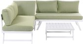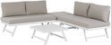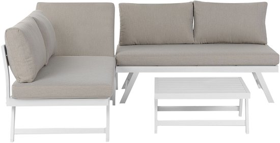 Profitez de moments ensoleillés avec le meilleur confort! Les canapés lounge et la table sont entièrement en aluminium et ont une apparence rafraîchissante grâce à leur couleur claire. La table basse assortie s'harmonise en couleur et s'intègre parfaitement dans l'ensemble. Le design moderne et non conventionnel est complété par des housses de siège et des coussins de dossier supplémentaires en taupe.