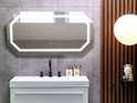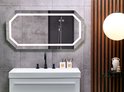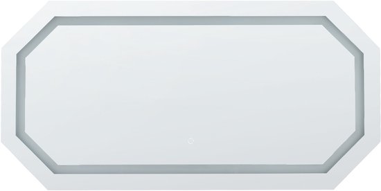 Miroir de salle de bain octogonal avec fonction lumière. Rehaussez le décor de votre salle de bain avec ce miroir octogonal unique. Les pièces sont livrées avec une lumière LED , qui peut être utilisée pour éclairer votre intérieur avec une forte lueur. Il est également équipé d'une fonction anti-condensation, le rendant prêt à l'emploi même après un bain chaud. Détails : Type de produit : miroir de salle de bain Style : Contemporain Couleur: Argent Température de couleur LED: Blanc neutre Type de matériau : Glas Matériau principal : Glas Overig matériau : PVC Forme : Octogonale Code de protection IP : IP 44 (résistant aux éclaboussures) Flux lumineux LED : 2200 Type de LED : CMS 2835 Orientation : Paysage Dimensions : Longueur du câble : 103 cm Profondeur : 4 cm Largeur : 120 cm Hauteur : 60cm Poids: 10 kg L'offre comprend : 1 x Miroir Caractéristiques principales : Avec système anti-condensation, Interrupteur à capteur tactile, Agrandit visuellement l'intérieur, Efficacité énergétique optimale, Matériau facile à entretenir et durable, Avec éclairage LED intégré Informations sur l'assemblage : Geen assemblage requis Conseils d'entretien: Glas: 1.N'utilisez pas de produits de nettoyage abrasifs. Ceux-ci peuvent endommager la surface du verre 2.Nettoyez avec un détergent doux ou un nettoyant pour vitres et un chiffon doux. Puis séchez soigneusement.