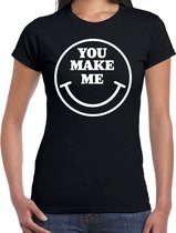 T-shirt habillé pour femme en noir. La chemise est imprimée d'un joyeux smiley rose pailleté. Portez cette jolie chemise, par exemple, lors d'un carnaval, d'un festival, d'une mauvaise party ou d'une autre soirée à thème joyeuse. Faites rire quelqu'un d'autre avec ce grand smiley joyeux sur votre chemise imprimée ! C'est également agréable à offrir comme cadeau d'anniversaire, par exemple. Matériel: 145 grammes, 100% coton. Merk: Bellatio Decorations.