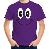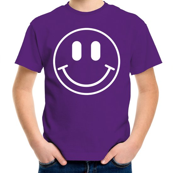 T-shirt habillé pour garçon en violet. La chemise est imprimée d'un joyeux smiley blanc. Portez cette jolie chemise, par exemple, au carnaval, à une fête d'enfants ou simplement parce que c'est une si belle chemise imprimée ! Donnez le sourire à quelqu'un d'autre avec ce t-shirt imprimé joyeux ! Matériel: 100% coton, qualité 145 grammes. Merk: Bellatio Decorations.