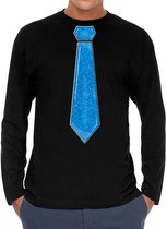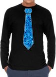 Chemise habillée à manches longues pour homme en noir. Cette jolie chemise est imprimée d'une cravate bleue à paillettes. Vous organisez bientôt une mauvaise party ou un carnaval ? Alors cette chemise est indispensable ! La chemise est également agréable à offrir ou à porter lors d'une sortie. Matériel: 145 grammes, 100% coton. Merk: Bellatio Decorations.