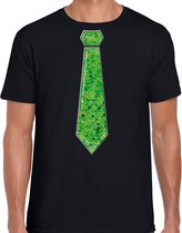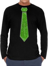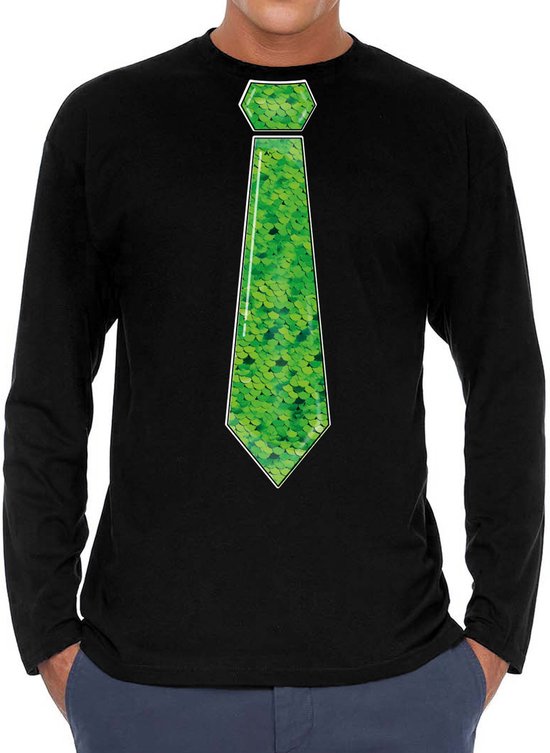 Chemise habillée à manches longues pour homme en noir. Cette jolie chemise est imprimée d'une cravate de couleur verte à paillettes. Vous organisez bientôt une mauvaise party ou un carnaval ? Alors cette chemise est indispensable ! La chemise est également agréable à offrir ou à porter lors d'une sortie. Matériel: 145 grammes, 100% coton. Merk: Bellatio Decorations.