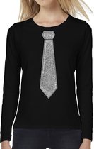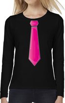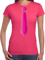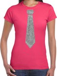 T-shirt habillé pour femme en rose. Ce joli t-shirt est imprimé d'une cravate argentée à paillettes. Vous organisez bientôt une mauvaise party ou un carnaval ? Alors ce t-shirt est indispensable ! La chemise est également agréable à offrir ou à porter lors d'une sortie. Matériel: 145 grammes, 100% coton. Merk: Bellatio Decorations.