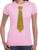 T-shirt habillé pour femme en rose clair. Ce joli t-shirt est imprimé d'une cravate argentée à paillettes. Vous organisez bientôt une mauvaise party ou un carnaval ? Alors ce t-shirt est indispensable ! La chemise est également agréable à offrir ou à porter lors d'une sortie. Matériel: 145 grammes, 100% coton. Merk: Bellatio Decorations.