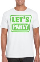 T-shirt habillé pour homme en blanc avec imprimé pailleté en vert. Ce joli T-shirt est imprimé avec le texte : Let's Party. Vous avez bientôt une mauvaise party, un carnaval ou une autre fête pailletée et glamour ? Alors ce T-shirt est indispensable ! La chemise est également agréable à offrir ou à porter lors d'une sortie. Matériel: 145 grammes, 100% coton. Merk: Bellatio Decorations.