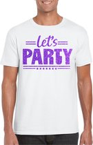 T-shirt habillé pour homme en blanc avec imprimé pailleté en vert. Ce joli T-shirt est imprimé avec le texte : Let's Party. Vous avez bientôt une mauvaise party, un carnaval ou une autre fête pailletée et glamour ? Alors ce T-shirt est indispensable ! La chemise est également agréable à offrir ou à porter lors d'une sortie. Matériel: 145 grammes, 100% coton. Merk: Bellatio Decorations.