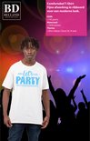 T-shirt habillé pour homme en blanc avec imprimé pailleté en bleu. Ce joli T-shirt est imprimé avec le texte : Let's Party. Vous avez bientôt une mauvaise party, un carnaval ou une autre fête pailletée et glamour ? Alors ce T-shirt est indispensable ! La chemise est également agréable à offrir ou à porter lors d'une sortie. Matériel: 145 grammes, 100% coton. Merk: Bellatio Decorations.