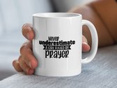 Tasse « Ne sous-estimez jamais », « Fille propulsée par la prière », « Inspirante », « Chrétienne », « Cadeau spirituel »