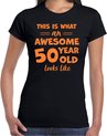 - Verkleed T-shirt dames - leeftijd 50 jaar - awesome - zwart - glitter oranje - Sarah XL