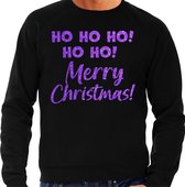Bellatio Decorations Wrong Christmas pull/pull pour homme - Joyeux Noël - noir - violet pailleté - Père Noël XL