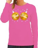 Bellatio Decorations Wrong Pull de Noël/Pull Dames - Boules de Noël - Rose - Boules dorées - Boule de Noël XL