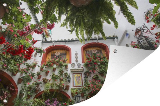 Belles fleurs sur le mur de Cordoba Garden poster 180x120 cm - Toile de jardin / Toile d'extérieur / Peintures d'extérieur (décoration de jardin) XXL / Groot format!
