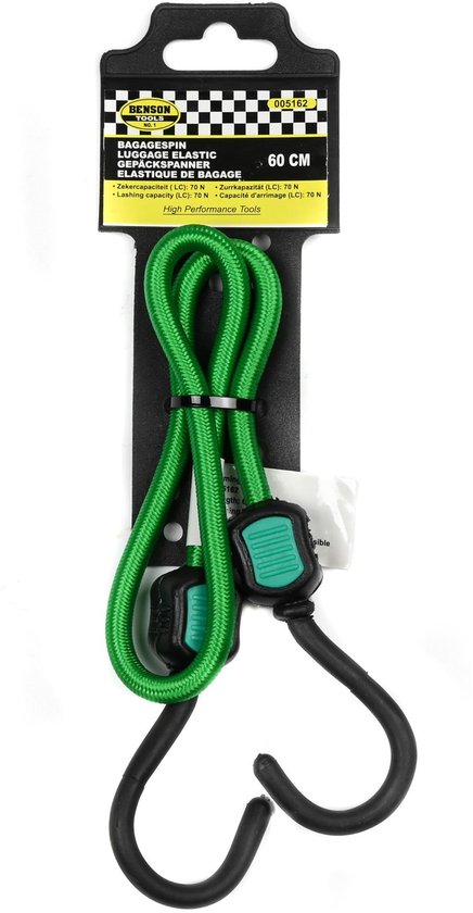 Araignée de bagages, Araignée de bagages, Araignée, Araignée de cargaison, Élastique avec crochet. Ce produit est extensible jusqu'à 50 pour cent. Idéal pour sécuriser les bagages ou les cartables à l'arrière de votre vélo. L'araignée à bagages est composée de pièces élastiques avec de solides crochets aux extrémités. Ces crochets sont pourvus d'un revêtement robuste. La longueur de l'araignée est affichée dans un état détendu. Sous tension, cet élastique devient deux fois plus long. Une araignée de bagages a 2 "" bras "". L'élastique peut être rond ou plat. L'araignée de bagages est utile pour fixer les bagages sur une galerie de toit sur la voiture ou la remorque, le bateau ou le vélo. La taille est de 8 mm x 60 cm.